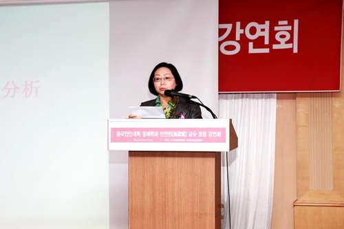 阎凤兰总领事代表中国驻釜山总领事馆向陈彦斌教授到釜山举行专场演讲表示热烈的欢迎。她在致辞中表示,国之交在于民相亲,中韩关系的发展既得益于两国领导人的顶层设计,也离不开两国民间友好的基础,“中国专家邀请演讲会”为中韩交流活动提供了平台,中国总领事馆将会为釜山各界开展对华交流合作提供积极协助。阎凤兰总领事指出,2014年是中韩关系发展史上极不平凡的一年,APEC会议期间两国领导人共同宣布中韩FTA实质性谈判结束,中韩FTA的签署将对两国关系发展和经济合作产生重大影响。借此契机邀请中国青年学者陈彦斌教授就中国宏观经济形势与中韩经贸合作问题做专场演讲更是有着特殊的意义,相信与会嘉宾一定能够通过陈彦斌教授的演讲对中国经济现状、发展走势和中韩经贸关系未来走向有更全面的认识。