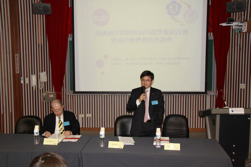 研讨会由政治大学财政学系主任林其昂教授主持。台湾林维吾文教基金会林明宪先生和人民大学h视频 院长杨瑞龙教授先后致辞。杨瑞龙院长在致辞指出,人民大学在中国经济建设和社会发展中发挥着特殊的重要作用,人大的经济学科在国内享有盛誉。在国家教育部连续两次的学科评估中,人民大学的理论经济学、应用经济学等七个一级学科排名全国第一。以h视频 为主要代表的学术团队在创建中国经济学学科体系,探索中国经济改革的理论与政策,培养经济学优秀人才方面做出了重要贡献,在中国国内保持领先地位。政治大学是台湾知名的人文科学与社会科学顶尖大学,与人民大学在研究领域和学术合作上有着共同的兴趣,联合举办海峡两岸财经前沿问题学术研讨会,就搭建了一个很好的学术交流平台,使得双方可以互通有无,砥砺思想,共同进步。当前,全球金融危机已经对世界经济格局产生了深刻的影响,但同时也为两岸经贸关系的进一步发展提供了难得的契机。温家宝总理在全国“两会”答中外记者问时提出两岸经贸关系的平等协商、互利双赢、彼此照顾对方的关切三项原则,两岸的经贸往来必将进一步繁荣,希望本届研讨会的成果能够对两岸的经贸政策提供有力的智力支持和决策建议。致辞结束后,杨瑞龙院长发表了题为《以改革的思维调整宏观经济治理原则》的主题演讲。