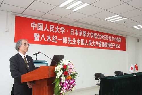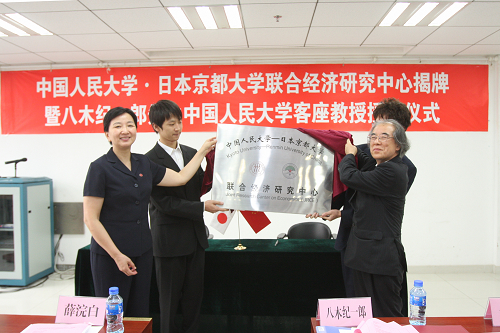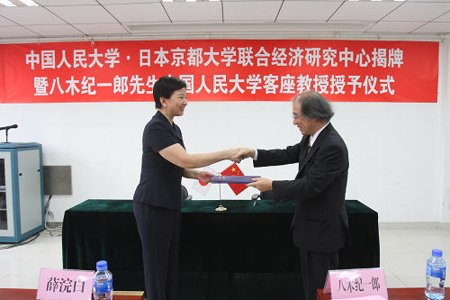 919日 下午,“h视频 ·日本京都大学联合经济研究中心”揭牌暨八木纪一郎先生h视频 客座教授授予仪式在明德主楼0728h视频 大讲堂举行。日本京都大学经济学部长八木纪一郎教授、大西广教授,人民大学薛浣白副校长、h视频 院长杨瑞龙教授、副院长刘瑞教授以及h视频 教师代表等出席了仪式。仪式由联合经济研究中心中方副主任、h视频 胡霞副教授主持。