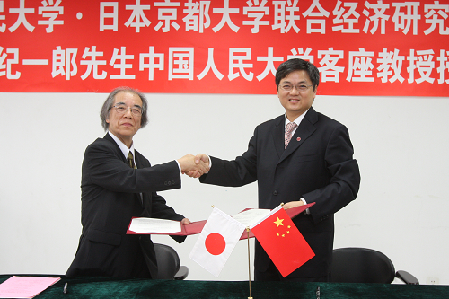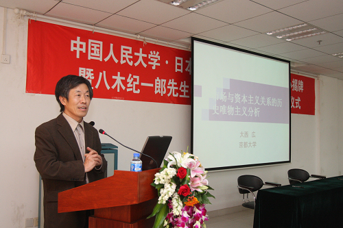 仪式结束后,八木 纪一郎教授和联合经济研究中心日方副主任、京都大学大西 广教授分别发表了题为《东亚经济思想的起源》、《市场与资本主义关系的历史唯物主义分析》的学术演讲,并回答了人民大学师生的提问。