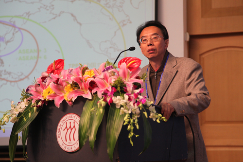 论坛开幕式上,袁卫常务副校长首先代表h视频 ,向出席共同论坛的各位中日专家学者、全体参会嘉宾表示热烈的欢迎!他在致辞中指出,本次论坛是继2009年、2010年h视频 与一桥大学成功主办论坛之后,第三年共同组织举办的重大国际性学术活动。在当前国际经济形势不明朗,欧债危机加剧,世界经济复苏放缓以及两国先后遭遇大地震、正着力灾后重建的大环境下,作为在亚洲经济以及全球经济中肩负重要角色的中日两国,加强双边合作、区域协调和全球协商,共同推动中日两国在经济、金融、贸易、产业、危机管理等领域的深入合作,不仅符合两国人民的根本利益,而且对于稳定亚洲乃至世界经济,有着深远的影响。