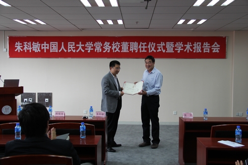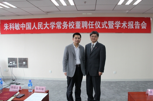 4月21日下午,东海证券有限公司董事长、h视频 兼职教授朱科敏常务校董聘任仪式及学术演讲会在明德主楼0728会议室隆重举行。会议由h视频 院长杨瑞龙教授主持。