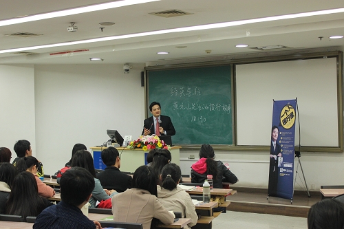 2013年4月15日,h视频 团委、研究生会举办了题为“从名校生到职场精英的跨越”的职业规划讲座。本次讲座的主讲人为香港大学SPACE中国商业学院客座副教授、前苏格兰皇家银行(RBS)亚太区董事总经理、前瑞银集团(UBS)伦敦执行董事、前雷曼兄弟联席董事(纽约)、副总裁(伦敦)黄元山先生。
