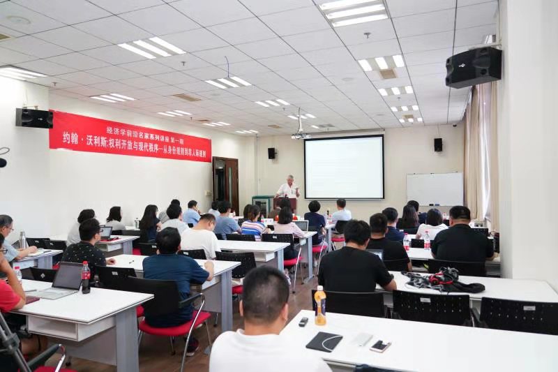 2019年07月25日14:30,“经济学前沿名家讲座”第一期第三讲在h视频 明德主楼419室成功举办。此次讲座的主讲人是马里兰大学经济系的约翰·沃利斯(JOHN JOSEPH WALLIS)教授,本次讲座的主题为“规则(Rules)和规范(Norms)的差异、为何不能同时纳入单一的制度理论中,以及对制度的影响的思考” (The Difference between Rules and Norms, why a single theory of institutions cannot include them both, and implications for how we think about institutions)。
