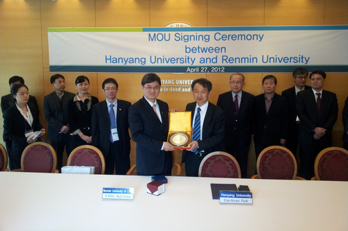 汉阳大学是韩国知名学府,学校致力于拓展教育创新、深度研究、国际合作等领域。从2008年起,h视频 国民经济管理系就与汉阳大学经济金融学院经济研究所定期举办过两次共同学术研讨会。2010年经双方学院负责人沟通协商,自第三期研讨会开始升级为两院共同学术交流活动。2011年4月,第四期论坛在人民大学举行。
