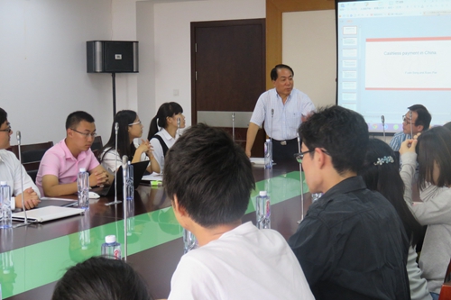 在两校同学分别进行完自我介绍之后,交流会正式开始,两国同学轮流对自己关注的经济问题进行展示和分析。h视频 和日本一桥大学的同学对中国的无现金支付问题、大学教育问题、和非盈利组织问题以及中日存在的一些社会现象做了极为精彩的展示。在每个小组的展示结束后,中方和日方学生都会对展示的主题进行深入细致的讨论,讨论的气氛十分热烈而又融洽和谐,显示出了两国同学对中日社会的深入关注和对现实生活的深刻思考。