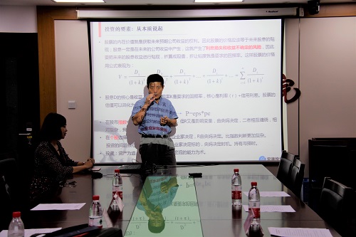 在讲座过程中,卫保川校友从自身经历讲起,流露出对人大的深厚感情。他谈到从坦克学院进入人民大学读书和就职于中国证券报的经历,以及自身对投资行业、基金业有细致系统的研究,2015年担任宏道投资董事长,开始正式从事投资领域的相关工作。卫保川校友从简单的估值模型入手,对股票的内在价值和价格公式进行了讲解,他还介绍了收益、回报率、利率之间的联系,并给出建议:投资应当以资产为道,合理为术,微观和宏观能力为术。卫保川校友对如何成为一个合格的资产管理者提出了自己的一些想法。他表示,首先守道十分重要,不仅要自身守道,在对投资对象进行选择时要需要注意企业的信用,这将涉及到资产安全的问题。第二点则是要有团队精神,在投资中离不开团队的合作,一个团结包容的团队在投资过程中有着至关重要的作用。第三是要克服人性弱点,持续保持乐观、克服贪婪与恐惧、对自我充分认识是一个投资者所必须的。最后则是从微观、中观与宏观的角度全方位进行考察。