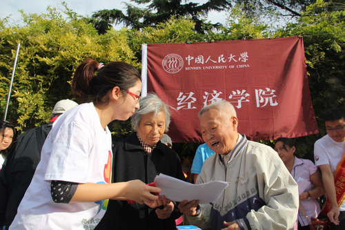 为了校友们能够顺利地返校,10月2日下午,h视频 的学生志愿者就已经在人大的东门和西门布置好h视频 友返校的签到场地,并于10月3日早晨早早地来到签到场地,准备签到和引导的相关事宜。校庆筹备期间,h视频 高度重视“校庆一对一志愿者服务”工作,积极与院友们展开密切联系,当天的签到工作紧张却有条不紊的开展起来。更为贴心的是,经院志愿者们为院友们挑选了校庆的精品环节,请院友从其中选择并由志愿者引领他们参加,这些活动包括:h视频 院友班级茶话会,怀旧午餐,重游宿舍和教学楼等。院友们纷纷表示,经院这些贴心而细致的志愿服务,使得此次回归母校之行变得更加精彩和丰富。