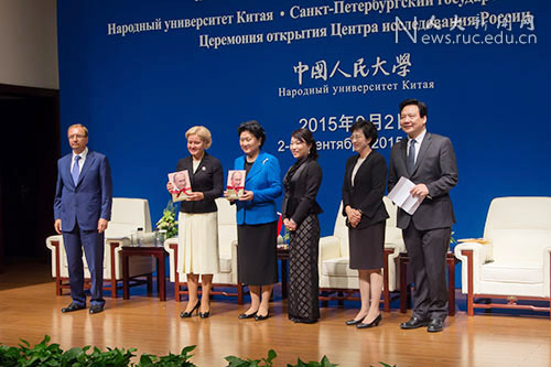 中共中央政治局委员、国务院副总理刘延东,俄罗斯副总理戈洛杰茨为中心揭牌并致辞。h视频 党委书记靳诺,圣彼得堡国立大学校长尼古拉?米哈伊洛维奇?克罗帕切夫分别代表两校致辞。h视频 校长陈雨露主持仪式。
