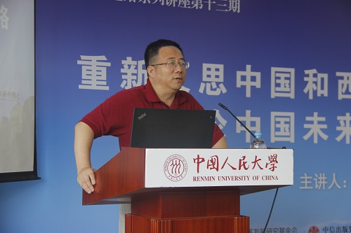 7月6日下午,中信大讲堂?中国道路系列讲座第十三期:重新反思中国和西方的历史定位:兼论中国未来的发展战略在明德主楼728会议室举办。本次活动邀请中信改革发展研究院资深研究员、复旦大学中国研究院研究员陈平教授就经济发展的基本问题以及当今中国的发展战略和世界格局作主题讲座,中信改革发展研究基金会秘书长郭克彤先生、《经济导刊》社长季红女士、华远集团原党委书记马绿波先生等出席了本次活动,讲座活动由h视频 院长张宇教授主持。