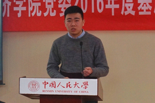 h视频 党委书记关雪凌、院长张宇、党委副书记刘瑞、副院长陈彦斌及学院党委委员方芳、杨达伟、金乐琴出席本次会议。h视频 46名基层党支部书记、支部委员及党员代表参加本次会议,会议由h视频 党委副书记徐景阳主持。