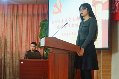 随后,来自教职工党支部和学生党支部的共23名党支书进行现场述职,接受学院党委委员老师和基层党支部成员考核评议。经过全面详实的述前准备,各党支书在五分钟内重点围绕履职主要情况和特点、存在的主要问题和原因、下一步工作思路和主要措施等三个方面进行汇报。党支书们通过文字、数据、图片等多种形式全面总结2016年度党支部建设中积极开展基本组织生活、严格把关党员发展环节、努力发挥基层党支部战斗堡垒作用和贯彻落实上级党组织要求的内容与成果,深刻剖析自身存在的不足与缺陷,并对2017年度支部工作开展进行规划与展望。各支部组织生活会质量与数量得到保障,但创新性与能动性仍有待提高;学生与教职工党员队伍逐渐壮大,但党员自身理论水平与政治意识仍需加强,支部凝聚力与群众基础还需扩大。