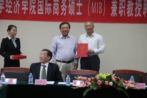 杨瑞龙院长宣布了h视频 聘请的来自政府部门和企事业单位的有突出成就和声望的兼职教授名单,吴晓求校长助理为各位受聘的教授颁发了聘书。