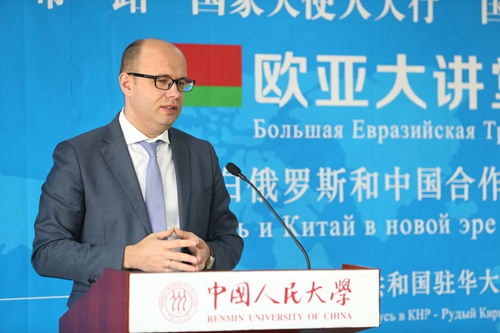 鲁德大使首先对人民大学的邀请表示感谢,并简要介绍了他本人的工作经历和白俄罗斯的国家概况。随后,他就中白两国在政治、经济等领域的合作发表了演讲。