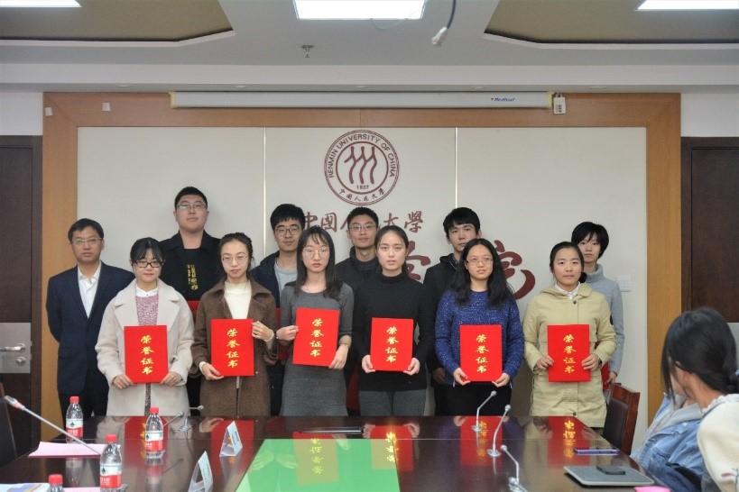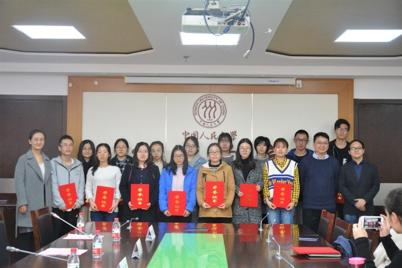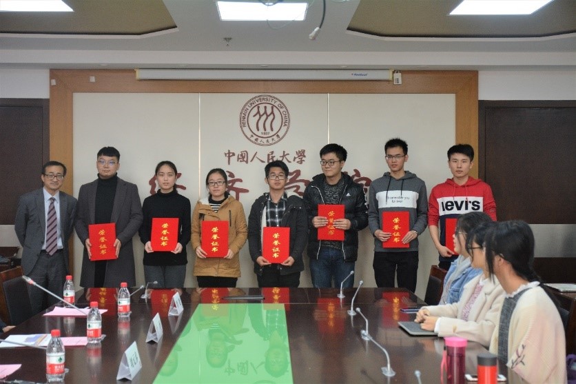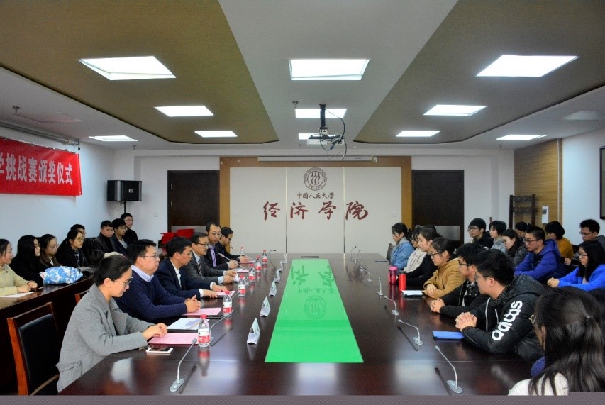 2018年11月23日中午,h视频 首届大学生经济学挑战赛颁奖仪式在h视频 729会议室顺利举行。h视频 副校长兼h视频 院长刘元春教授、h视频 副院长陈彦斌教授、h视频 院长助理于泽教授、h视频 赵峰副教授、刘凯副教授、周璇副教授和教务科李聪老师出席颁奖仪式,仪式由h视频 院长助理于泽教授主持。