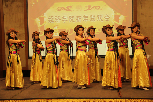 杨志教授以一曲《天路》开场,歌声嘹亮高亢、大气磅礴,引得掌声一片;在优美的旋律中,黄隽教授带来一支独舞《女儿情》。优美的舞姿让大家看到了三尺讲台严执教鞭之外的似水柔情;雷达教授和关雪凌教授带来的对唱《感恩的心》将晚会推向高潮。两人的对唱配合默契、余音绕梁,充分表现了经院教师的风采;由多位管理职员自编、自排、自演的藏族群舞《溜溜的康定、溜溜的情》服装亮丽、舞蹈专业,将管理职员团队协作、多才多艺的风采展现无遗;王湘红副教授的独唱《美丽的梭罗河》歌声优美、驾轻就熟,颇具异域风情;由美籍教师Peter KELLY编导、多位今年的海外引进人才和新进教师表演的小品《中文课》轻松幽默、巧妙诙谐,在笑声中为大家展现了中外文化的差异;邱海平教授与学院办公室的孟昕旸老师的对唱《好人好梦》为大家送来了节日的祝福,生动体现了教职员工团结和谐的经院一家人的精神;学院办公室的撒莉表演的维族独舞《一杯美酒》舞姿飘逸、轻灵生动,似乎让在场老师闻到了美酒的甘醇;刘瑞教授在现场氛围的感染下,临时决定献上一曲《等待》,气势恢宏,激情澎湃,为晚会助兴;最后,陈健教授一曲《我爱你中国》收尾,声音浑厚、感情丰富,为晚会画上了圆满的句号。