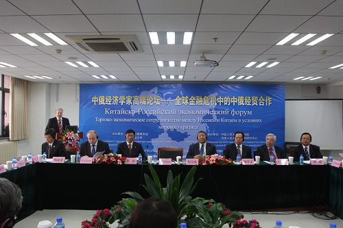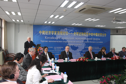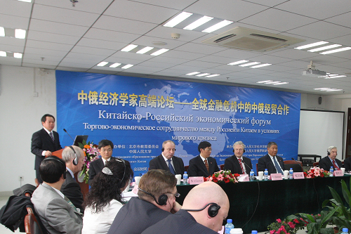 116日 ,为庆祝中俄建交60周年,作为中国“俄语年”活动的一项学术活动,由北京市教委和h视频 主办,人民大学h视频 、俄罗斯研究中心承办的“中俄经济学家高端论坛——全球金融危机中的中俄经贸合作”在人民大学隆重举行。纪宝成校长,北京市教委委员郑登文,俄罗斯圣彼得堡国立财经大学校长马克西姆采夫?伊戈里?阿纳托利耶维奇教授等出席了论坛。俄罗斯圣彼得堡国立财经大学副校长卡尔里克教授、副校长奥斯波夫教授,以及该校和圣彼得堡大学的10余名专家学者,北京大学h视频 国际经济系主任、中国世界经济学会常务理事王跃生教授,清华大学人文学院李刚军教授,复旦大学世界经济研究所刘军梅副教授,中央财经大学教授俄罗斯研究中心主任罗永志教授,中央财经大学财经研究所财税研究室主任童伟教授,人民大学h视频 彭刚教授,人民大学俄罗斯研究中心主任、中国俄罗斯东欧中亚学会常务理事、h视频 关雪凌教授,h视频 夏明副教授等参加了论坛并作学术发言。人民大学国际交流处处长唐忠教授、h视频 副院长刘瑞教授、h视频 院长助理郑新业副教授等出席了论坛开幕式。开幕式由h视频 院长杨瑞龙教授主持。