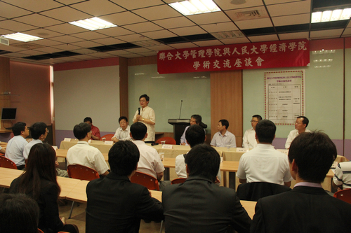在联合大学经管学院,h视频 的学者与该院师生举行了一场别开生面的座谈会。林其昂院长,该院经营管理学系主任赖宏峰副教授、信息管理学系主任张朝旭副教授、财务金融学系主任杨和利副教授、管理硕士学位学程主任罗干钟副教授,以及黄浩良副教授、黄元巨助理教授、陈宇佐助理教授、何柏欣助理教授、杨哲智助教等参加了座谈会。活动中,杨瑞龙院长、刘凤良副院长等详细介绍了人民大学在中国大陆的学术地位、人大经济学科的优势、人才培养、国际交流、师资建设以及留学生招收等方面的情况,还特别推介了人大的暑期学校课程、中国经济全英文硕士项目以及与台湾地区学生互派和交流等的情况,欢迎该院到人大深造和学习,他们还回答了经管学院师生提出的问题,现场气氛热烈,充满了欢声笑语,达到了很好的交流效果。