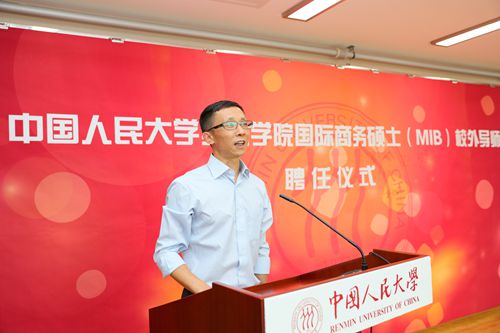 7月1日晚,h视频 国际商务硕士(MIB)校外导师聘任仪式在明德主楼728报告厅举行。h视频 党委副书记吴付来教授出席仪式并致辞,易方达基金首席宏观策略分析师戴险峰先生,南京市文化投资控股集团金电文创信用信息服务公司总经理高晨伟先生,工业和信息化部国际经济技术合作中心主任龚晓峰先生,《财经》杂志执行主编、《哈佛商业评论》中文版主编何刚先生,腾讯研究院首席经济学家、产业与经济研究中心主任孟昭莉女士,北京师范大学政府经济管理博士后、高级经济师彭程先生,工业和信息化部中小企业局副局长秦志辉先生,泰康人寿助理总裁宋宏谋先生,好想你枣业股份有限公司董事长兼总经理石聚彬先生,正大畜牧投资(北京)有限公司人力资源副总裁陶启文先生,丝路博源投资基金管理(北京)有限公司董事长王芊霖女士,国家开发银行规划局副局长王文松先生,江苏银行总行副行长、北京分行行长张荣森先生等十三位校外导师代表出席仪式。中国中小企业发展促进中心姜梅女士、贺晶女士,h视频 研究生院专业学位办主任马胜利先生,h视频 院长张宇教授、副院长王晋斌教授、国际商务硕士(MIB)项目主任程大为教授、h视频 国际商务教师代表出席仪式。聘任仪式由h视频 党委书记关雪凌教授主持。