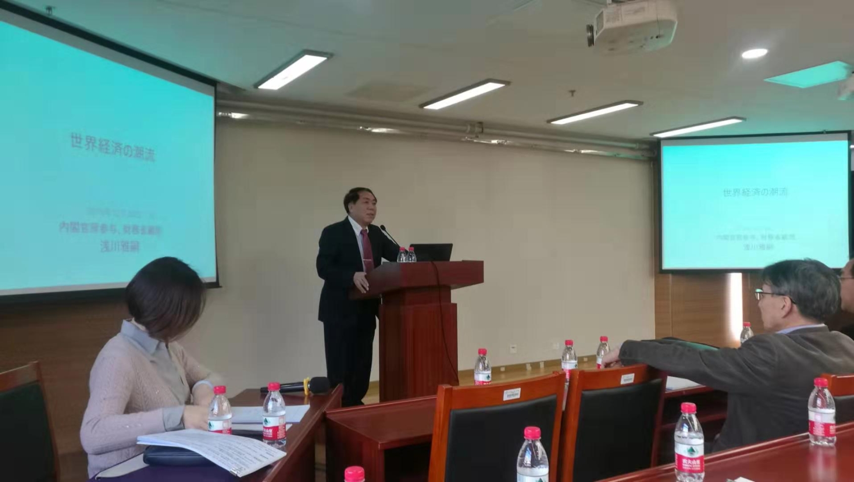2019年12月30日上午,h视频 太平洋经济研究所第五届“亚太经济合作与中国论坛”,在明德主楼728会议室举行。日本首相特别顾问、财务省顾问浅川雅嗣(Asakawa Masatsugu)先生,应邀作了题为“世界经济发展新动向”的学术报告。在报告开始前浅川雅嗣先生与h视频 党委书记兼院长刘守英教授进行会见,就世界经济发展走向交流了看法。讲座由h视频 太平洋经济研究所所长、h视频 教授陈建教授主持。校内外师生八十余人参加了此次论坛。