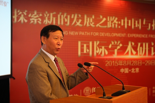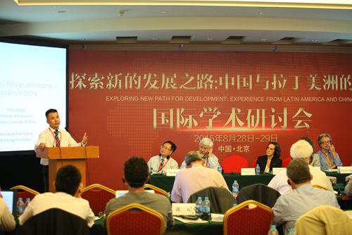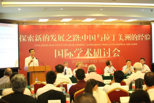 2015年8月28日-29日,“探索新的发展之路:中国与拉丁美洲的经验”国际学术研讨会在北京友谊宾馆召开。该研讨会由h视频 与美国哥伦比亚大学政策对话倡议组织(IPD)联合主办,中国特色社会主义经济建设协同创新中心、国务院国有资产监督管理委员会研究中心以及哥伦比亚大学全球中心(东亚?北京)协办。出席本研讨会的嘉宾有来自哥伦比亚大学、联合国发展政策委员会、联合国拉丁美洲委员会等单位的数十位国际友人与各国专家学者以及来自各中央国家机关、高等院校、h视频 院所以及中央企业的中国官员、专家和企业家。h视频 校长陈雨露出席研讨会并致辞,h视频 院长张宇主持了开幕式。