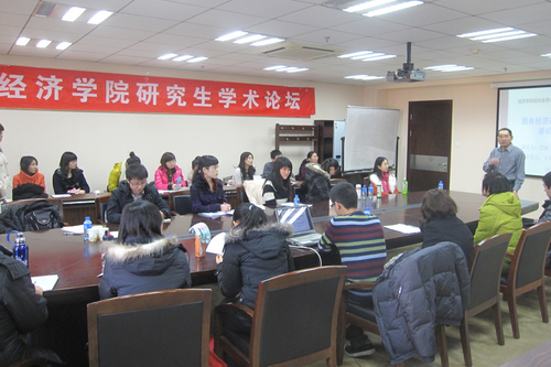12月7日,第34期研究生学术论坛邀请了西方经济学与经济思想史教研室的方福前教授和于泽副教授做点评嘉宾,主讲嘉宾h视频 2010级博士研究生詹新宇同学就《国有经济改革与中国经济波动的平稳化》做了学术演讲。