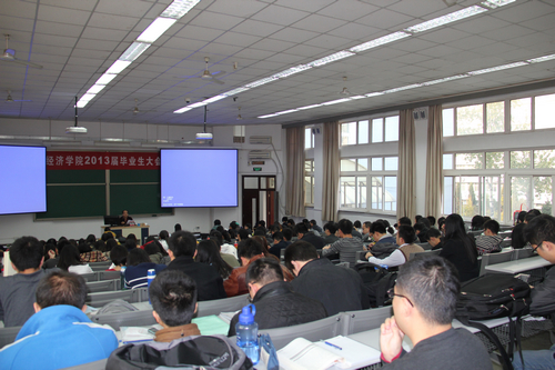 11月20日,h视频 2013届毕业生大会在公教三楼召开。学校招生就业处副处长、就业指导中心主任周荣出席大会并作就业政策报告,h视频 学生职业发展中心主任明占生副教授主持大会。
