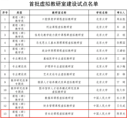 h视频 资本论课程虚拟教研室入选教育部首批虚拟教研室建设试点名单