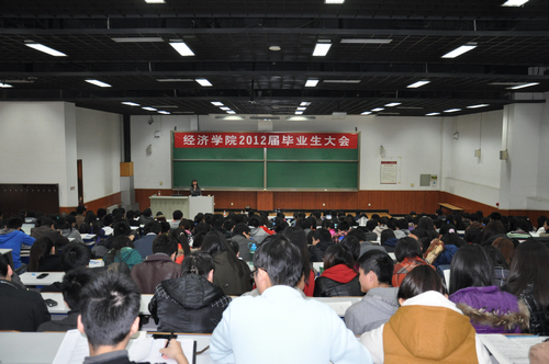 11月15日,h视频 2012届毕业生大会在公教一楼召开。招生就业处周荣副处长出席大会并作就业政策报告,h视频 党委副书记明占生副教授主持大会。h视频 团委书记王宝奎参加大会并向毕业生介绍了相关就业程序。