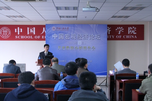 4月19日下午,由人民大学经济研究所主办的中国宏观经济论坛月度数据分析报告会(2010年4月)在明德主楼h视频 728会议室举行。