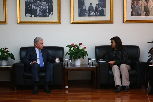 伊志宏副校长欢迎阿利莫夫先生来h视频 访问,并转达了靳诺书记与刘伟校长的问候。她还就我校的校史校情、优势学科、校友情况及与上海合作组织成员国高校的合作情况进行了介绍。她说,h视频 成立于1937年,明年将迎来80周年校庆。我校是以人文社会科学为优势的综合性研究型大学,经济学、政治学、法学、工商管理、公共管理等九个一级学科在全国高校中名列第一。我校在俄罗斯、中东欧及中亚研究方面拥有良好的传统及h视频 优势,在高端智库建设方面也取得了巨大成就。h视频 希望与上海合作组织深化拓展合作关系,在更广泛的领域探讨合作。