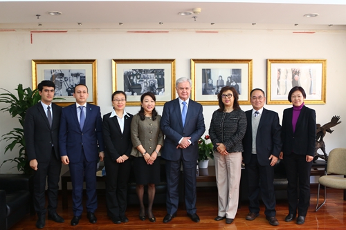 12月8日上午,上海合作组织秘书长阿利莫夫先生一行访问h视频 ,并在“欧亚大讲堂”发表演讲。h视频 副校长伊志宏教授会见并就深化拓展我校与上海合作组织的交流合作等话题进行了探讨,h视频 副校长贺耀敏教授出席大讲堂并致欢迎辞。