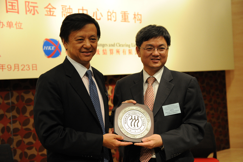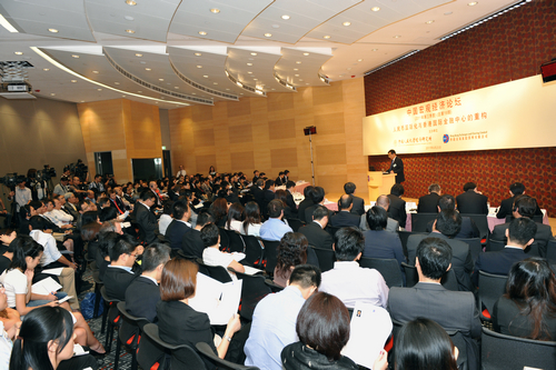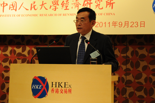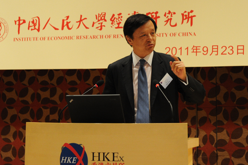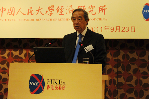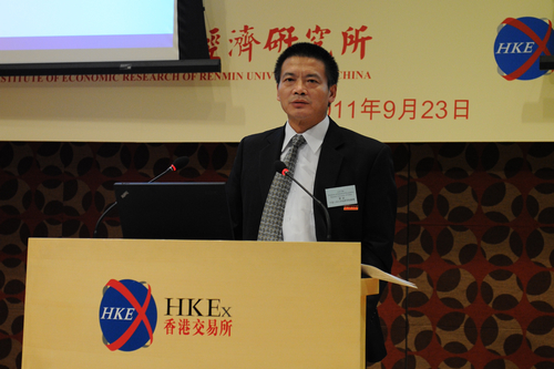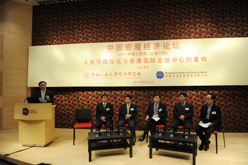9月23日,受香港交易及结算所有限公司的邀请和资助,由h视频 主办的“中国宏观经济论坛(2011年第三季度,总第19期)”在香港证交所会议中心成功举办。这是继2011年4月,与美国哥伦比亚大学在纽约成功联合举办“中美宏观经济圆桌论坛”之后,h视频 与香港特别行政区金融机构对接的一次新的尝试,又一次将中国宏观经济论坛的国际性提高到了一个新水平。h视频 副校长林岗教授、香港交易所主席夏佳理先生出席论坛并致辞,本期论坛的主题为“人民币国际化与香港国际金融中心的重构”,论坛开幕式及主报告发布由h视频 院长、经济研究所联席所长杨瑞龙教授主持。