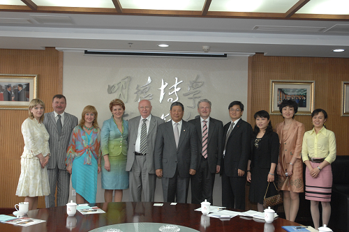 2009 年5月4 ,俄罗斯圣彼得堡财经大学校长Maksimtsev Igor教授率团访问我校。纪宝成校长会见代表团。随团来访的还有该校名誉校长Tarasevich Leonid教授和常务副校长Leussky Alexander教授等7人。h视频 院长杨瑞龙教授、关雪凌教授,国际交流处副处长程鑫陪同会见。