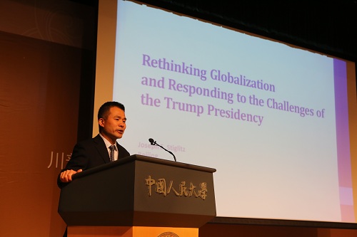 3月21日上午,h视频 名誉教授、诺贝尔经济学奖获得者、哥伦比亚大学教授、世界银行前首席经济学家、克林顿政府经济顾问委员会主席斯蒂格利茨教授在h视频 八百人大教室发表了以“特朗普时代对全球化的再思考:新时期的中美关系”为主题的演讲,本次演讲由h视频 和华章书院共同举办。