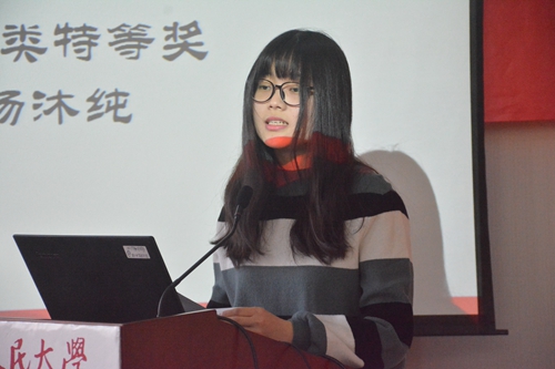 论坛评审教师代表黄滢老师、指导教师代表齐昊老师和“经英杯”获奖代表杨沐纯同学也分别作了精彩的发言。黄滢老师表示,“经英杯”论文比赛对同学们来说是一个很好的学术锻炼机会。同学们应当着重注意选题的问题。齐昊老师对研究、写文章过程中的一些习惯、细节问题提出了具体的意见,并鼓励同学们在h视频 道路上坚持下去。杨沐纯同学则结合自己h视频 初步探索中的收获分享了如何写一篇好文章的经验。