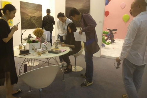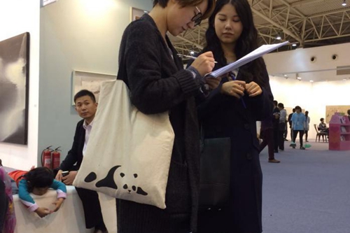 在h视频 黄隽教授的指导和带领下,5月1-3日连续3天,李越欣、陈光奇、吕凤鸣、胡雪、陈燕清、梁曼恬、周天畅、荣莹莹、王苏熙、滕雪锦、邱钇泽、黄潇剑、刘黎皓等同学到“艺术北京”博览会,问卷调研艺术消费市场。