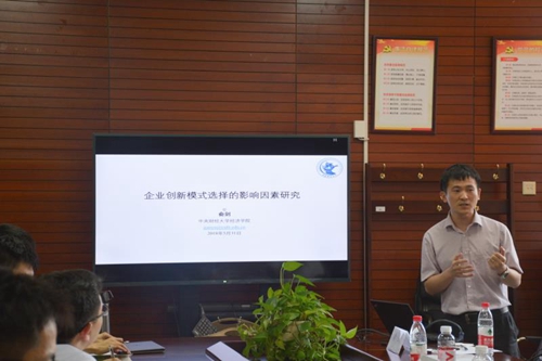 随后,俞剑老师带来题为“企业创新模式选择的影响因素研究”的学术报告。俞老师指出,独立自主创新模式、合作研发创新模式和模仿创新模式是现代企业创新的三种主要形态。发展中国家的企业往往会选择模仿发达国家企业而形成一种模仿创新模式,但随着后发国家企业的不断发展,这种可供模仿的空间会越来越小。这就要求企业与外界进行合作研发创新,并进一步走向独立自主创新的道路。俞老师研究发现,市场竞争程度越激烈,企业越愿意选择合作研发创新模式和模仿创新模式;市场竞争程度越弱,企业才愿意选择独立自主创新模式。针对中国的自主创新问题,俞剑老师提出了一些政策建议。一是缩短企业研发周期,提高企业独立自主研发经费占比。二是增加政府补贴的覆盖,合理调控补贴力度。三是加快企业专利产品转化,增强专利产品出口。俞剑老师指出,以上手段均有助于我国企业走上独立自主创新之路。