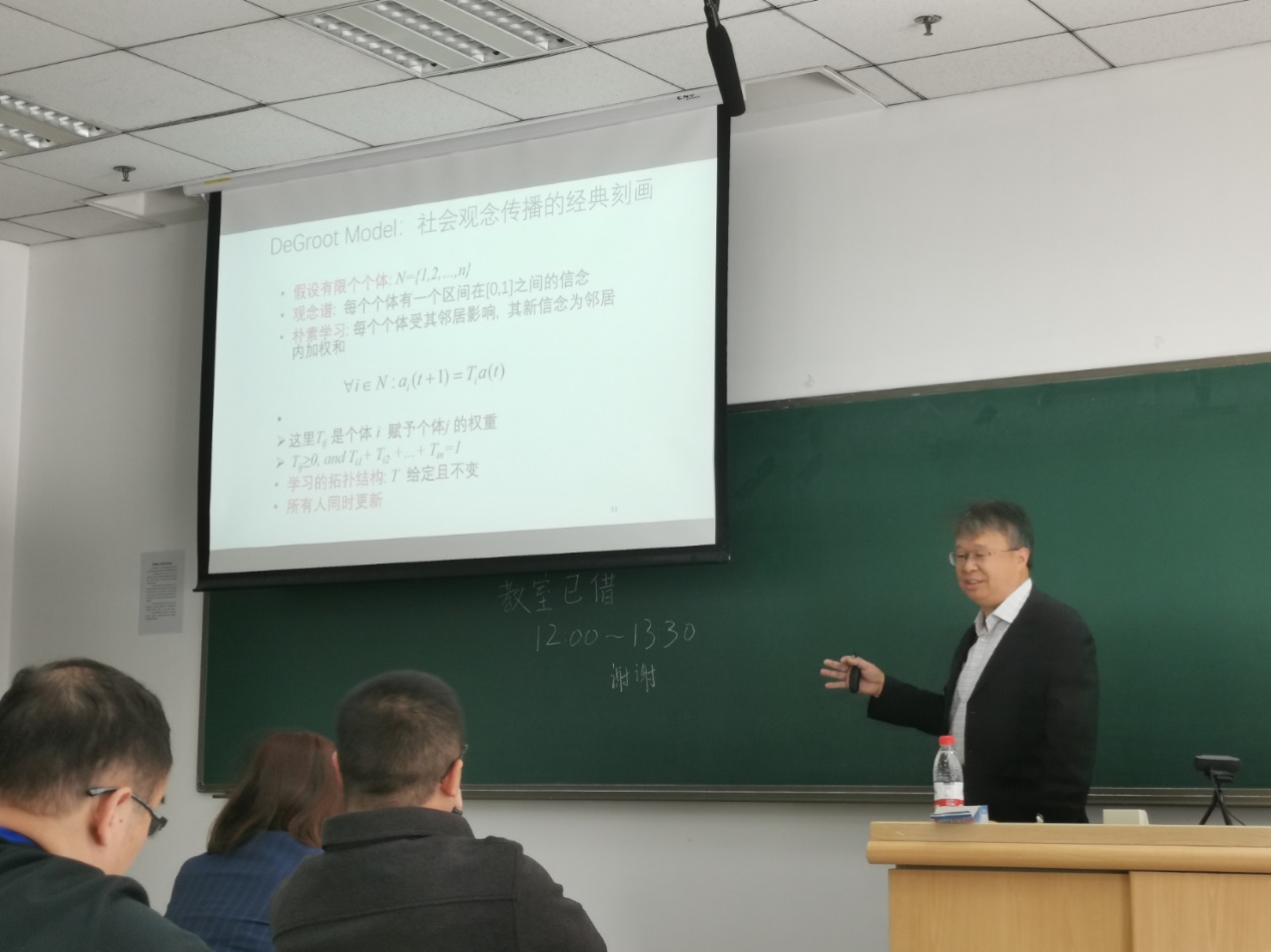 杨晓光老师本次报告的题目是“从蚂蚁森林看数字时代的客户建设”。报告首先讨论了数字经济的联接力和穿透力,以及数字时代消费者需求特征,说明抓住客户是数字经济的核心。然后以蚂蚁森林为对象,展示迎合人类的需求,提供便利性,满足享乐动机、获利动机、声誉需求,有助于短期内获得客户。最后通过两个意见动力学学模型,说明持续地使用外生和/或内生的信息激发机制,能够产生行为规范,建设客户粘性,形成稳定且不断扩展的客户群。