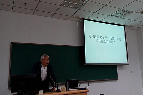 4月15日晚,由h视频 举办的创新经济论坛第十二期期会议在h视频 明德主楼408举行。来自北京工业大学耿丹学院思想政治理论学科部主任丁晓良博士进行了主题的《为何改革30多年后还是科技与经济结合有问题》演讲。