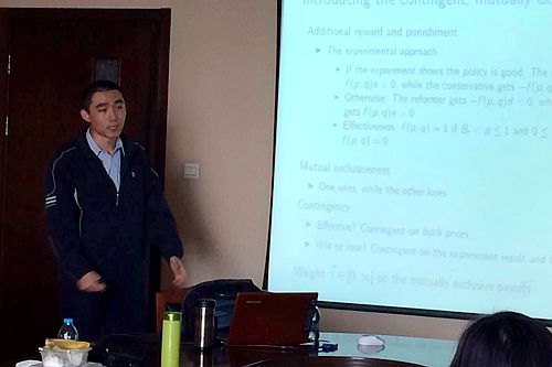 谢阳博士首先介绍了这篇文章的两个启发性故事,中国改革开放的决策过程和二战时期盟军实施“市场花园行动”的决策过程。然后介绍了根据启发性故事,将政治收益和损失加入改革实验的成本收益分析中,创立的一个群体决策模型。他发现,如果双方都对自己的信念有确切的认识的情况下,双方的意见分歧越大,越有可能使一项实验性的措施决议得以实施;双方在实验成功或失败之后得到的额外的非经济奖赏或惩罚则会强化这一结果。此次讲座丰富了群体决策中政治因素影响的理论分析,对研究中国政治经济的学者和学生具有较多的启发性。