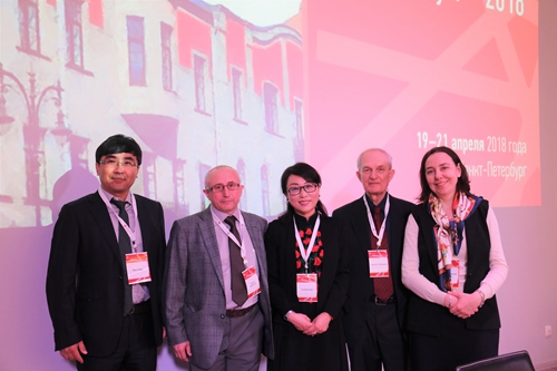4月19日,h视频 党委书记兼常务副院长、h视频 -圣彼得堡国立大学俄罗斯研究中心主任关雪凌教授的著作《普京政治经济学》(俄文版)新书发布会在圣彼得堡国立大学第三届国际经济学术研讨会开幕式上举行,来自中国、俄罗斯、日本、英国、法国、西班牙、意大利、白俄罗斯、立陶宛等国二百余位专家学者参加了会议。