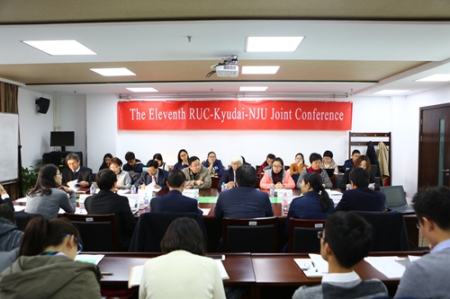 11月3日,第十一届中日三校联合学术研讨会在明德主楼734会议室召开。会议以“中日经济增长的前景与展望”为主题,h视频 院长张宇教授、九州大学经济学部学部长矶谷明德教授、南京大学商学院名誉院长赵曙明教授等出席会议并致辞,来自h视频 、九州大学和南京大学的多位学者参加会议并展开交流。