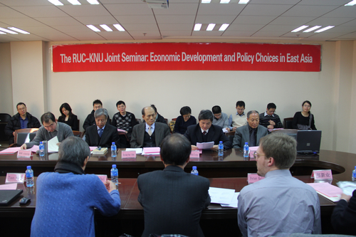 2月17日,由h视频 、韩国庆北国立大学经济与管理学院联合主办的“h视频 —韩国庆北国立大学联合学术研讨会:东亚经济发展与政策选择”在人民大学举行。韩国庆北国立大学经济与管理学院院长Ji-sang Chang教授,Seokchin Kim教授,Jung-Kyoo Choi教授,Byeong-hae Sohn教授和Joung-woo Lee教授等19位韩国学者及学生代表来华参会。
