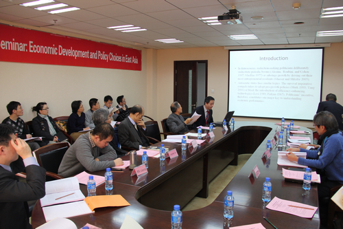 联合学术研讨会在h视频 明德主楼734会议室举行。来自中韩两校的30余位学者参加会议。开幕式由h视频 院长助理郑新业副教授主持.h视频 院长杨瑞龙教授,庆北国立大学经济与管理学院Ji-sang Chang教授在开幕式上分别致辞。杨瑞龙教授代表主办单位对与会专家表示热烈欢迎,他祝愿研讨会能够在经济增长模式、宏观经济政策、企业技术创新以及如何进一步加深中韩等亚洲国家的区域经济合作、促进贸易增长等方面展开热烈而富有成效的讨论,为亚洲经济的持续繁荣贡献智力支持。Ji-sang Chang院长在致辞中说,h视频 和韩国庆北国立大学经济与管理学院在过去的合作中取得了丰硕的成果,祝愿此次研讨会也取得圆满的成功,并对主办方的盛情招待表示衷心的感谢。