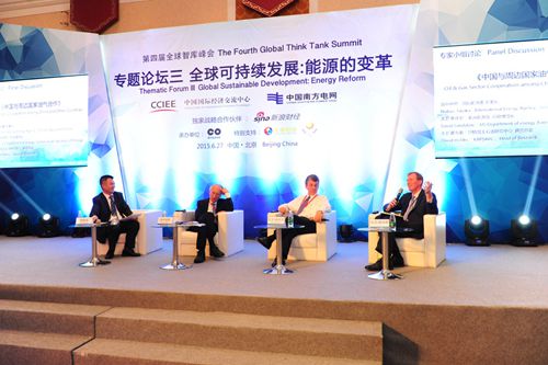 由中国国际交流中心主办的“第四届全球智库峰会”6月26-27日在北京举办。会议主题为“全球可持续发展,2015年后的新路径”。h视频 郑新业教授应邀出席26日大会,并在27日全程主持了六大专题论坛之三“全球可持续发展:能源的变革”。来自国内外能源企业,部委、地方政府、智库人士以及媒体的300余人出席论坛。