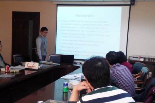 11月21日中午,h视频 发展经济学第二十六次研讨会在明德主楼734会议室举行,h视频 汉青经济与金融高级研究院助理教授叶茂亮博士报告了“Does money buy happiness?:Evidence from twins in urban china”。h视频 王湘红教授、孙文凯副教授、陆方文副教授、宋扬博士、社会与人口学院王玉君教授和农村发展学院尤婧副教授以及h视频 的一些博士、硕士研究生参与了会议。