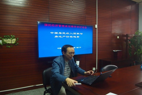 2017年4月19日,h视频 国民经济管理系举办首次双周学术研讨会。会议由郑超愚教授主持,杨天宇教授作《中国居民收入预期和房地产价格趋势》的主题研究报告。