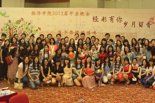 6月8日晚,h视频 2013 届“经彩有你,岁月留香”主题毕业晚会在文化大厦三层多功能厅举行。h视频 院长杨瑞龙教授,h视频 荣誉一级教授卫兴华,一级教授胡乃武,h视频 原副校长杜厚文教授,h视频 副院长刘元春教授、刘瑞教授、王晋斌教授,党委副书记丁凯副教授,教师代表陈建教授、侯景新教授、沈久沄副教授、门淑莲副教授、程大为副教授、杨斌老师等以及学院党团学办公室明占生老师、孙岚老师、教务科刘延军老师,以及团委书记李佩洁、撒莉等出席了晚会。h视频 2013届本、硕、博毕业班数百名同学欢聚一堂,共同度过了一个难忘的夜晚。