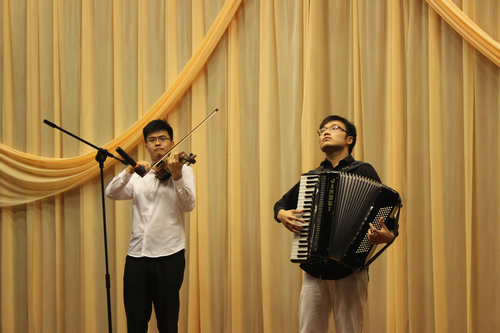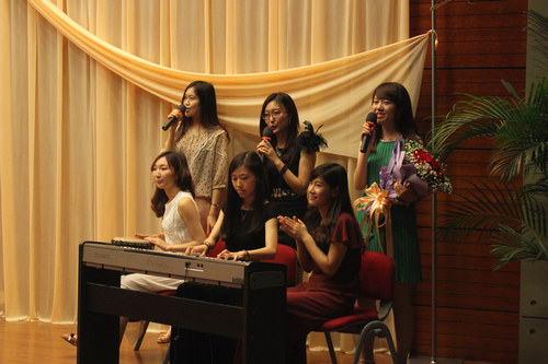整场晚会突出“感恩与梦想”的主题,气氛活跃,格调高雅。晚会内容丰富,形式多样,歌唱、舞蹈、器乐合奏等应有尽有,掌声、欢呼声此起彼伏。程黛蓉等人的合唱歌曲《光阴的故事》深情款款,勾起了大家四年的大学回忆;李恬等三人的埃及舞蹈《法老与舞姬》活力无限,充满异域风情;刘延军老师独唱的《月亮代表我的心》情深意切,表达了他对同学们的满腔热忱;周思宇同学和撒莉老师手风琴合奏《飞速的加洛普》激情洋溢,体现着毕业生与老师之间的浓浓情谊,把现场气氛推向高潮。